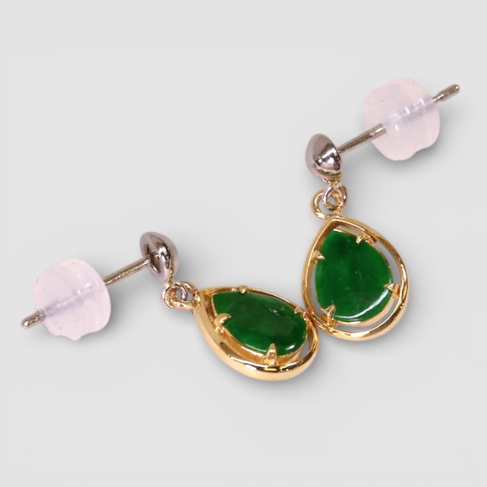 K18の緑石が付いたイヤリングを、Pt900/K18素材で