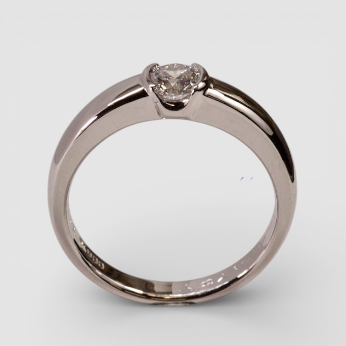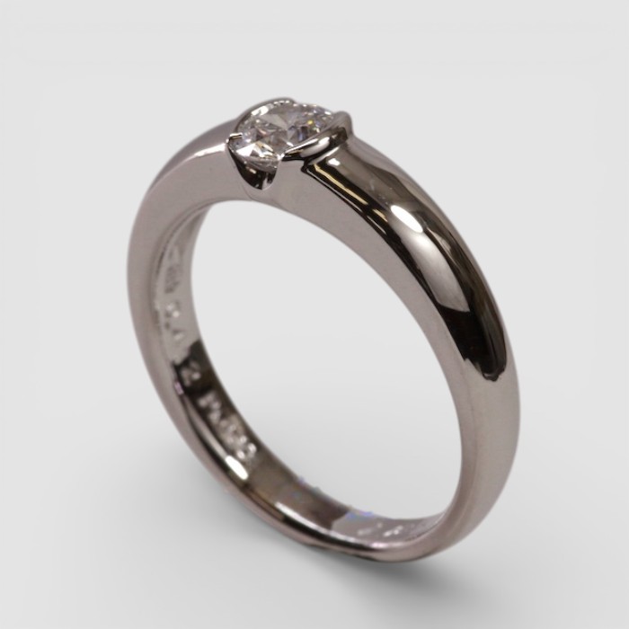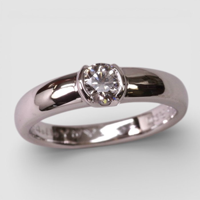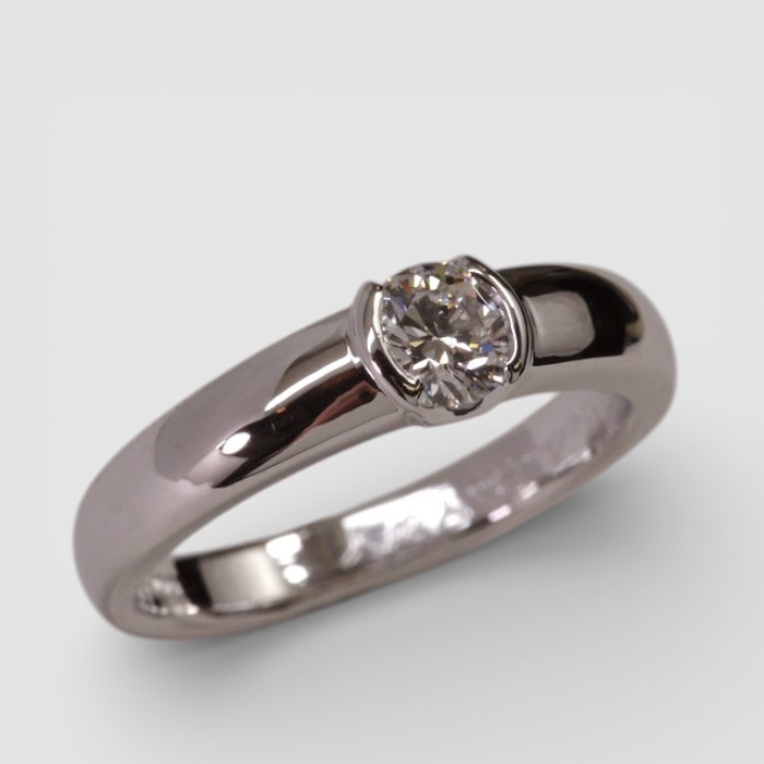 従来の「爪」で留めるタイプではなく、ダイヤモンドを「両サイドで留める」スタイルをご希望。