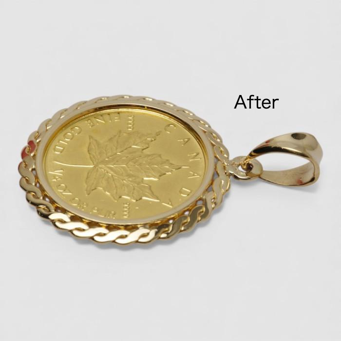 遠方のお客様より「K18喜平ネックレスが通らないので、コインペンダントのバチカンを大きくして欲しい」とのご依頼。太めのチェーンに合わせてパーツを製作しました。