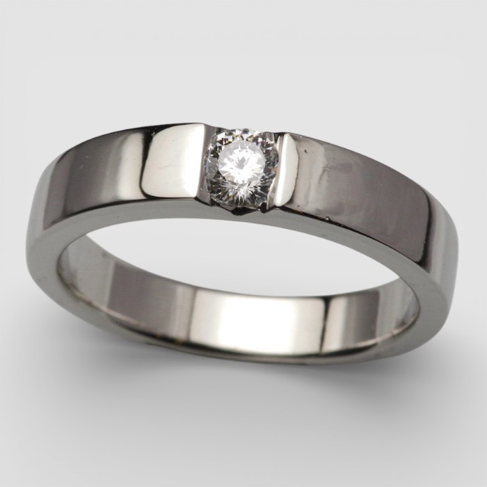 婚約指輪の制作ご依頼のお客様。Pt900、ダイアモンド1P入りのペンダントをご持参になり、これを材料に婚約指輪を製作して欲しいというご依頼でした。ダイアモンドの幅でリングを製作して、センターでダイアモンドを留めるシンプルなデザインにしました。