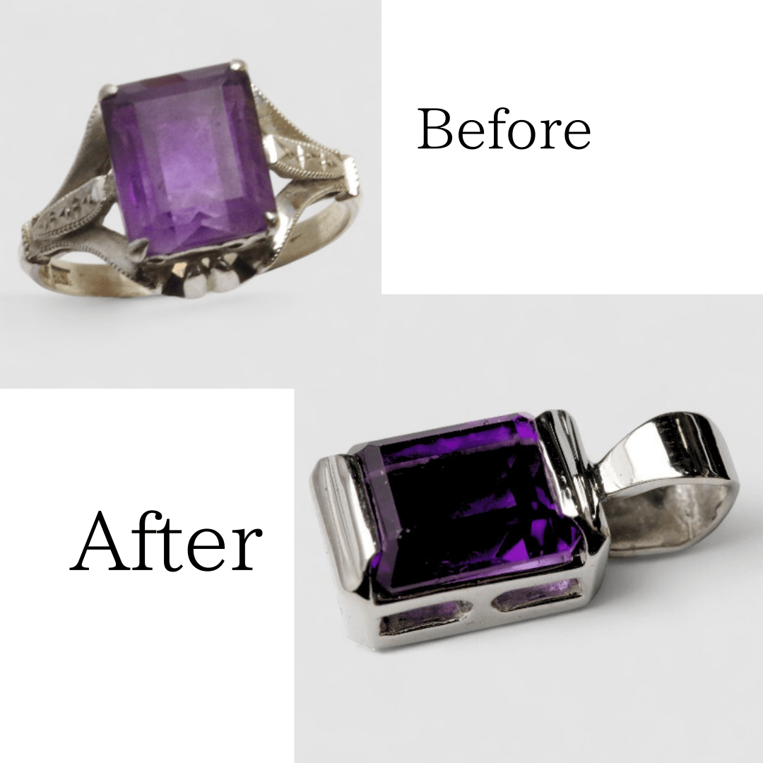 【リフォーム例】K14WGアメシストリングをPtペンダントへ作り替え