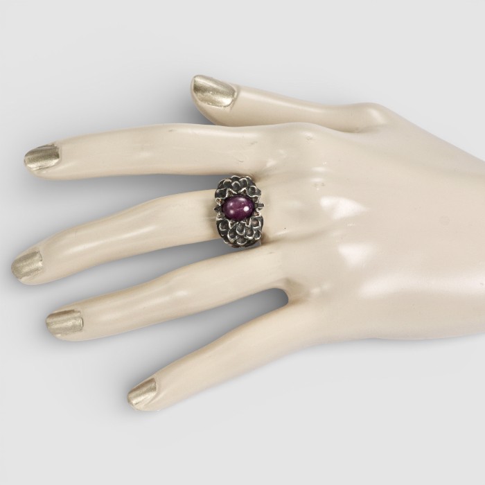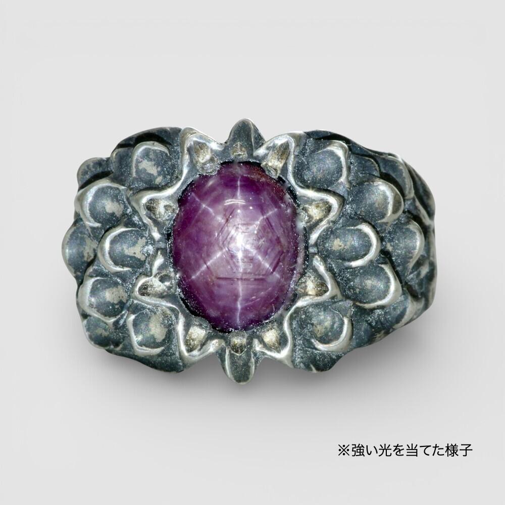 SV925 インドスタールビー オリジナルダリアリング(一点もの)は、センターのインドスタールビーを引き立てるように、両サイドをダリアの花びらイメージで造形した当店オリジナルリングです。