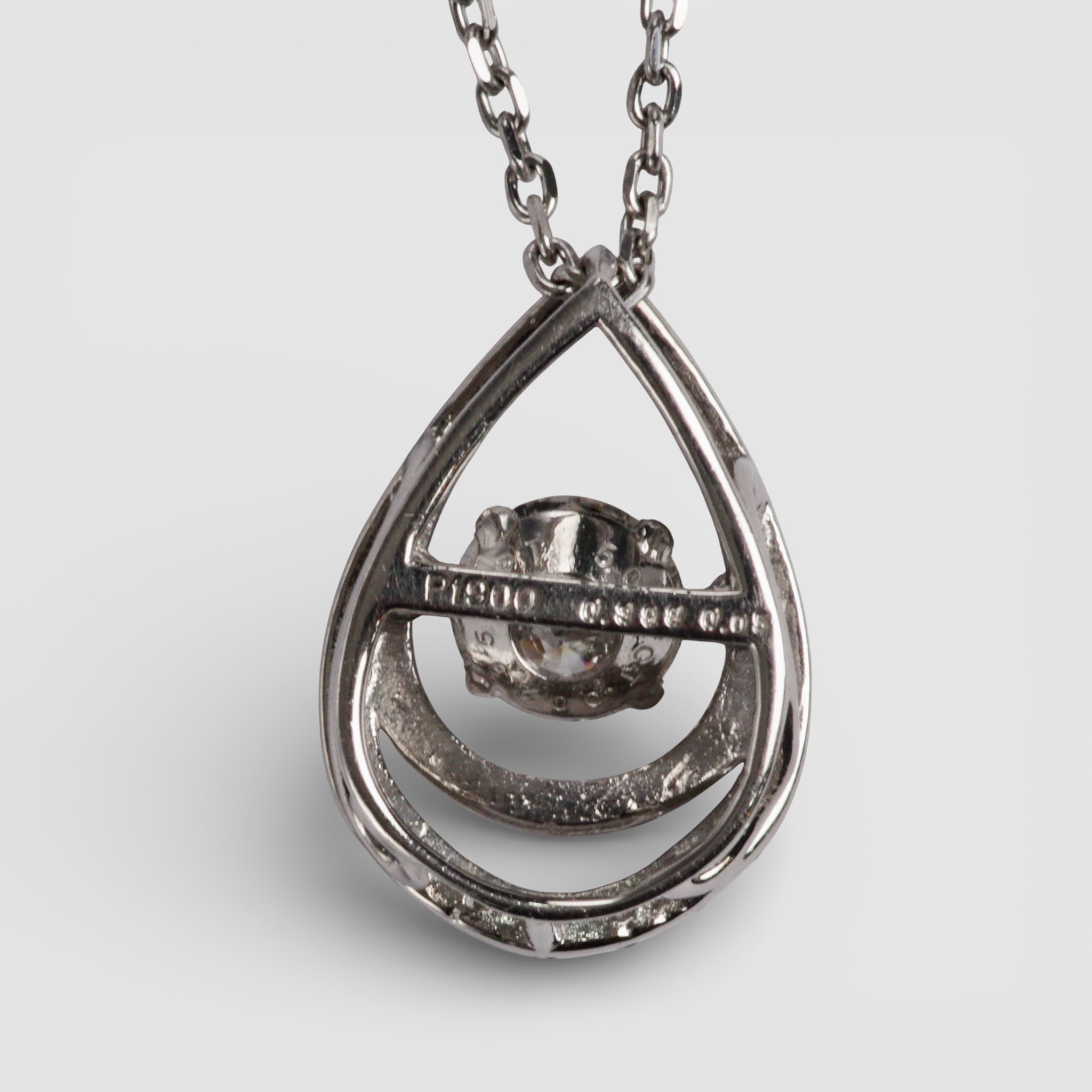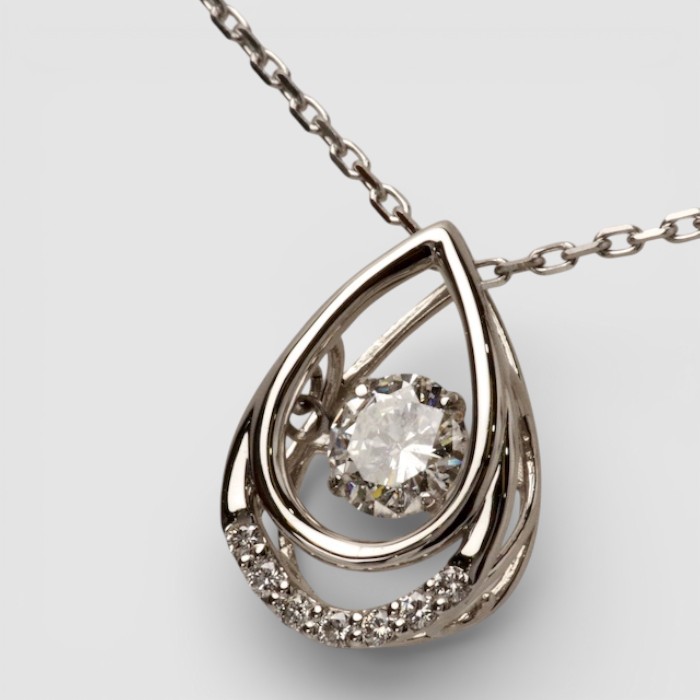 わずかな振動でダイヤが揺れ、輝き続ける「ダンシングストーン」が主役のペンダントネックレスです。
