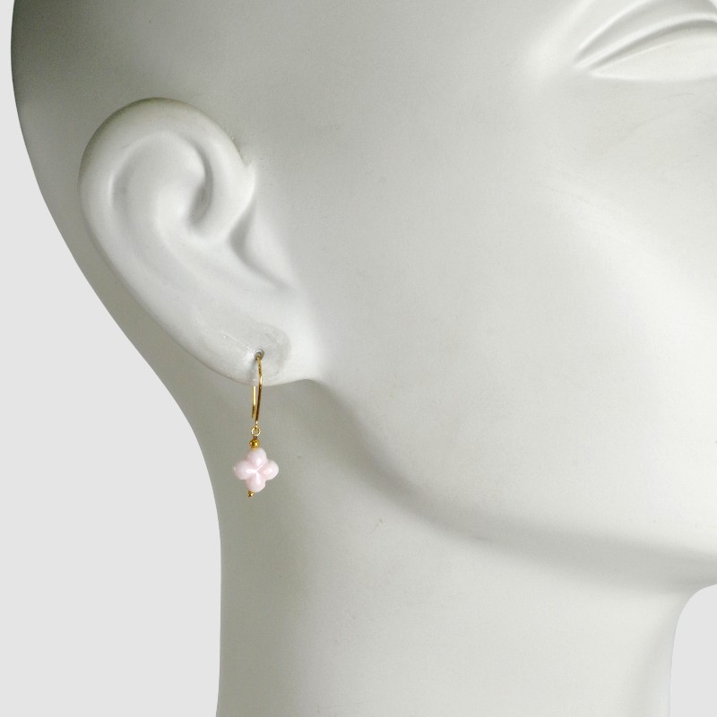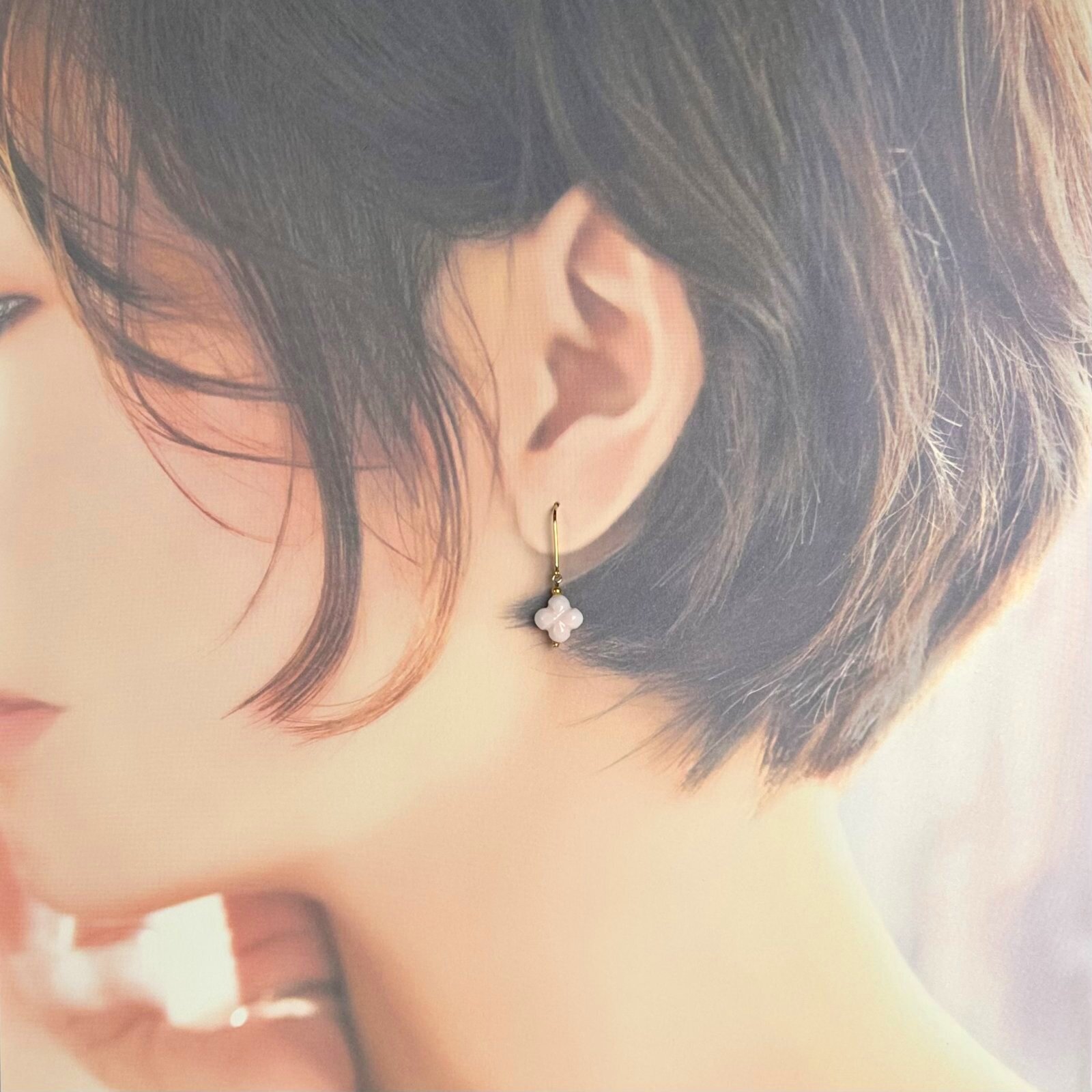 小花のようなフォルムが可憐で、肌なじみが良く目立ちすぎずさらっと着けられるのが魅力。揺れ感のあるデザインで、横顔にさりげない華やぎを添えます。