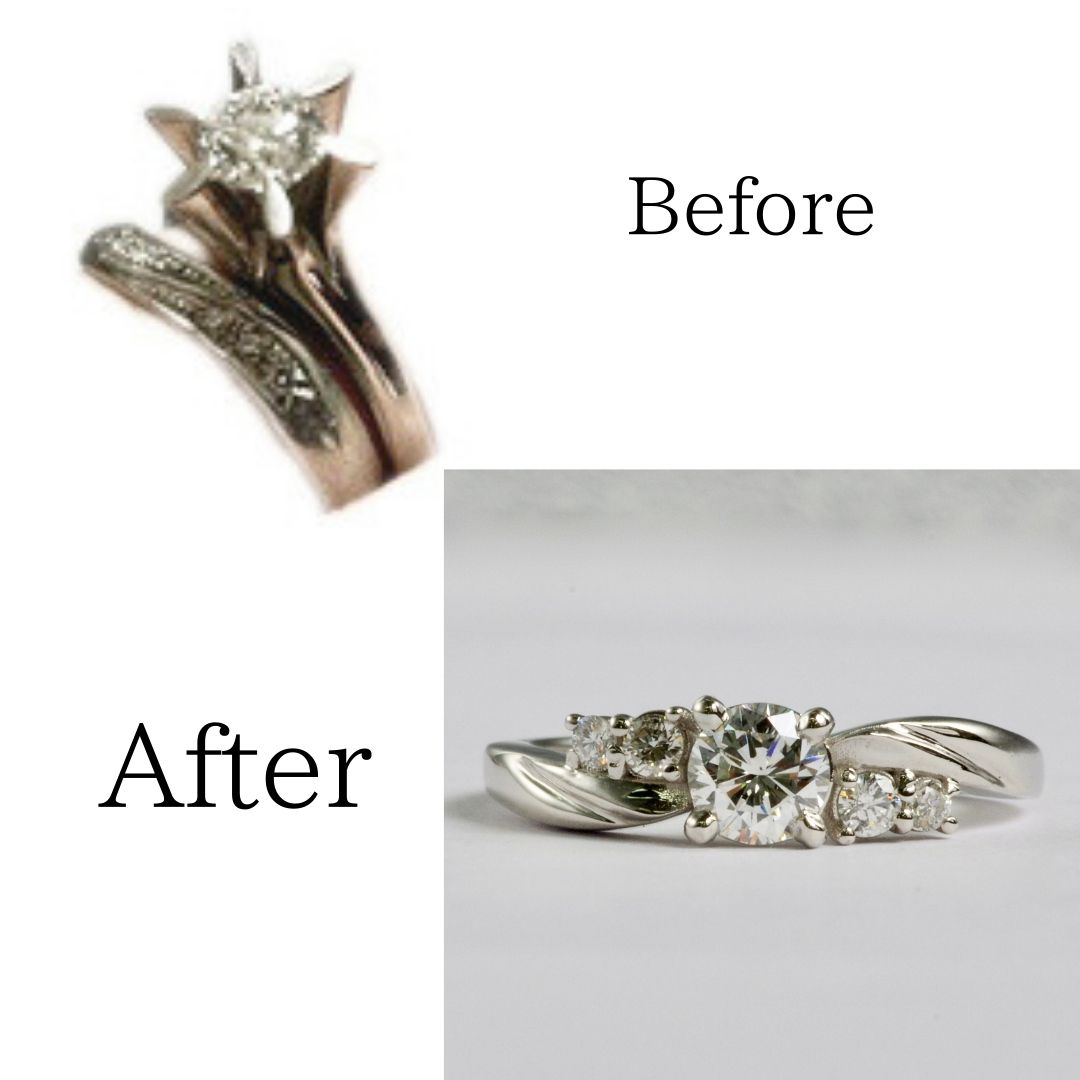 【リフォーム例】婚約指輪の立爪ダイヤを結婚指輪のカーブに合わせてリフォーム