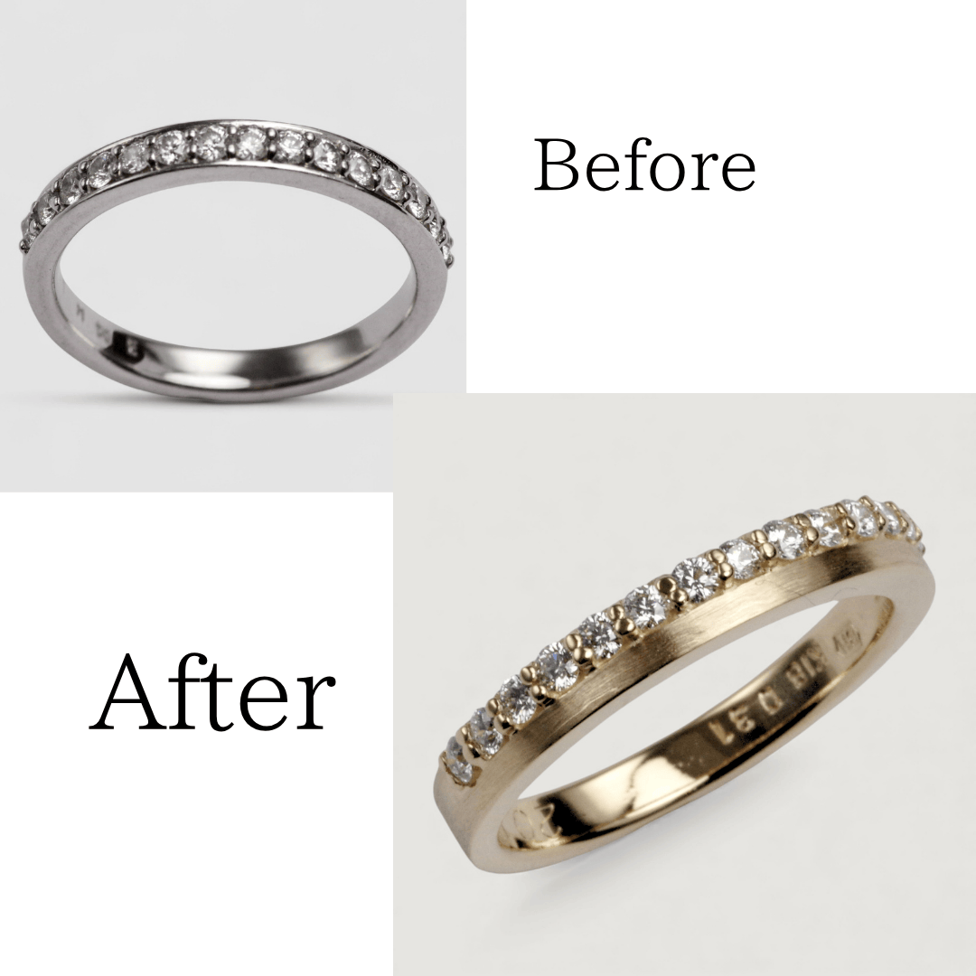 【リフォーム例】プラチナのハーフエタニティリングをK18ゴールドへ