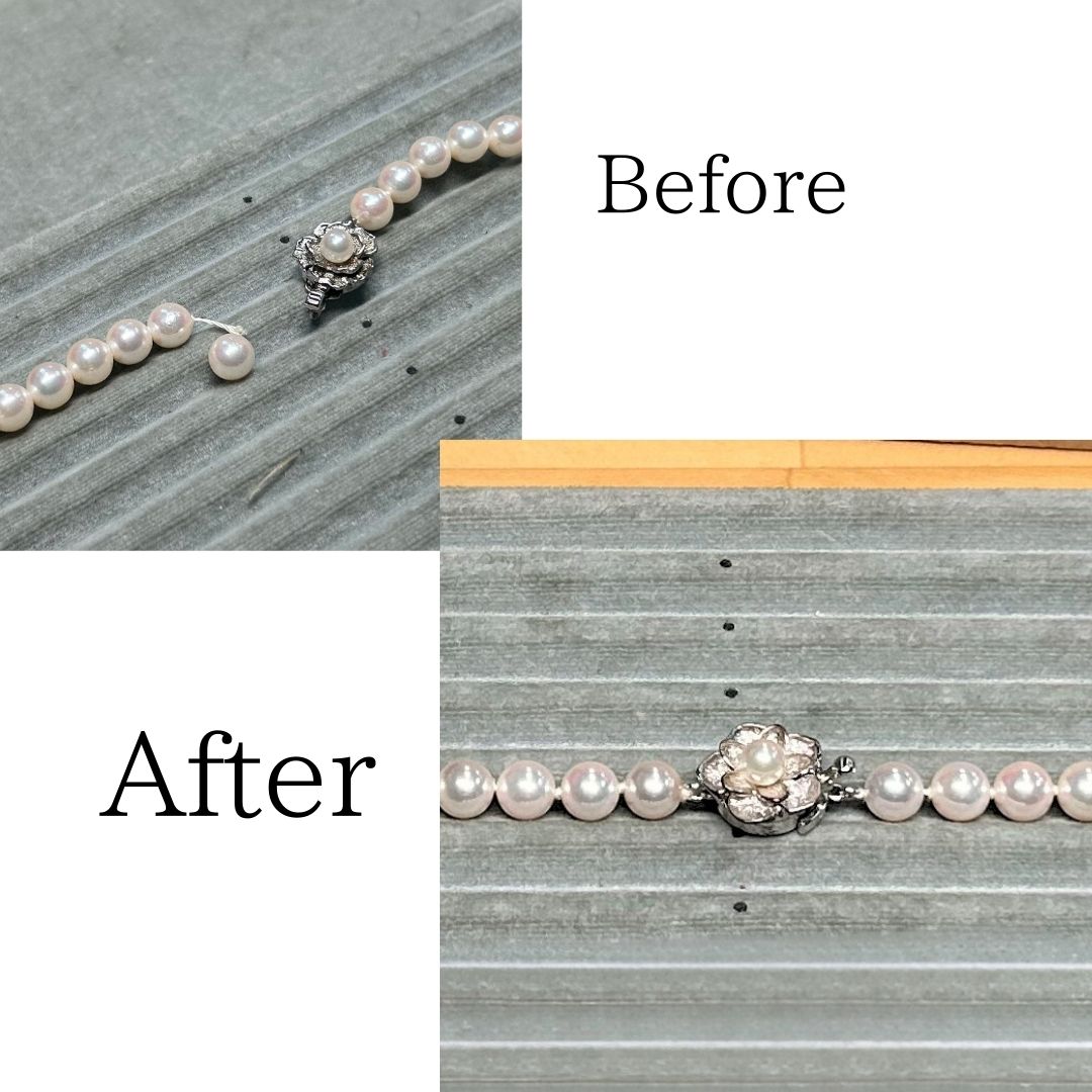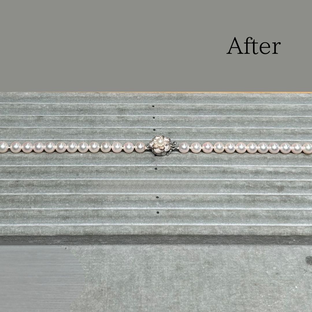 糸が切れてしまったパールネックレスをお預かりし、修理いたしました。