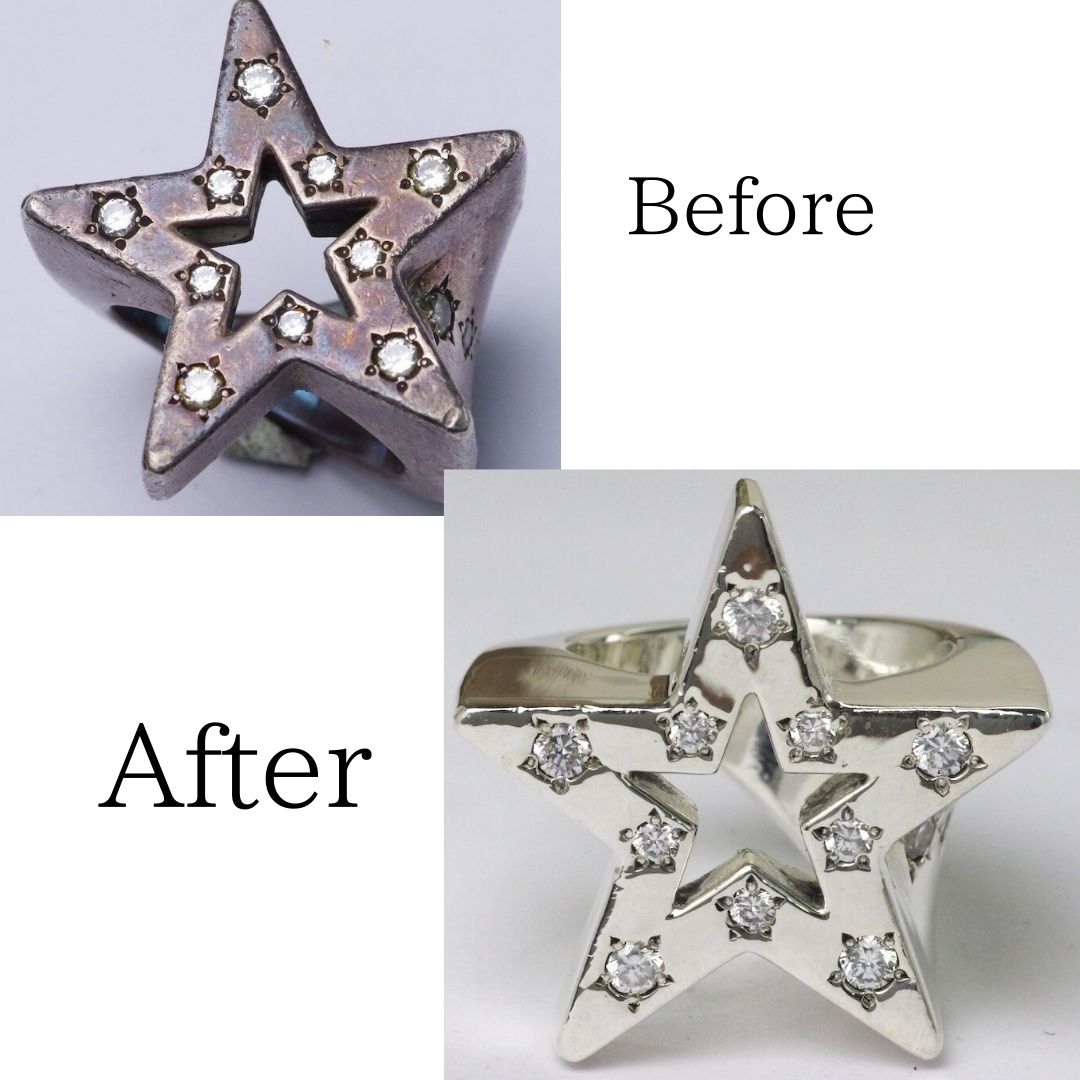 シルバーの星形(CZ入り)リングを、新品仕上げした修理事例です。