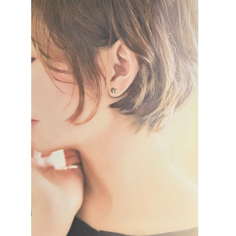 大きめのす玉サンゴが耳たぶの下にふわっと浮いて見える、可愛いシルエットが魅力。