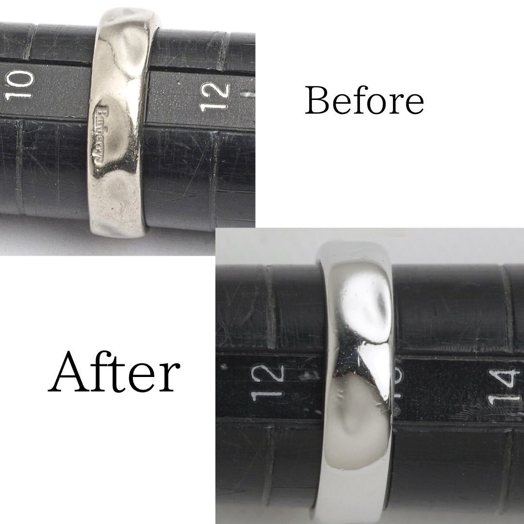 熟練の職人がサイズを2番大きく調整し、全体を綺麗に磨き上げて元の輝きを取り戻します。 -