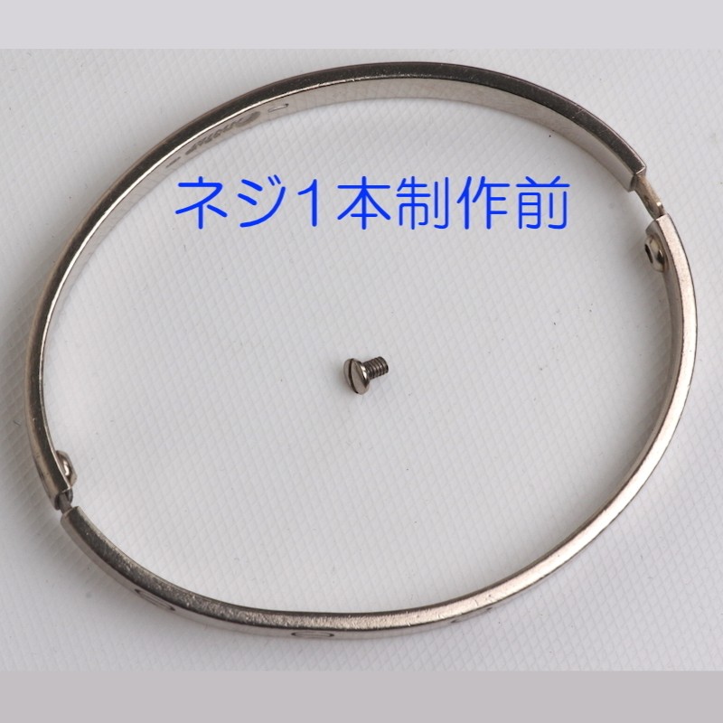 お預かりしたホワイトゴールドのラブブレスに合わせて、750WG(18金ホワイトゴールド)でネジを1本から新規製作。