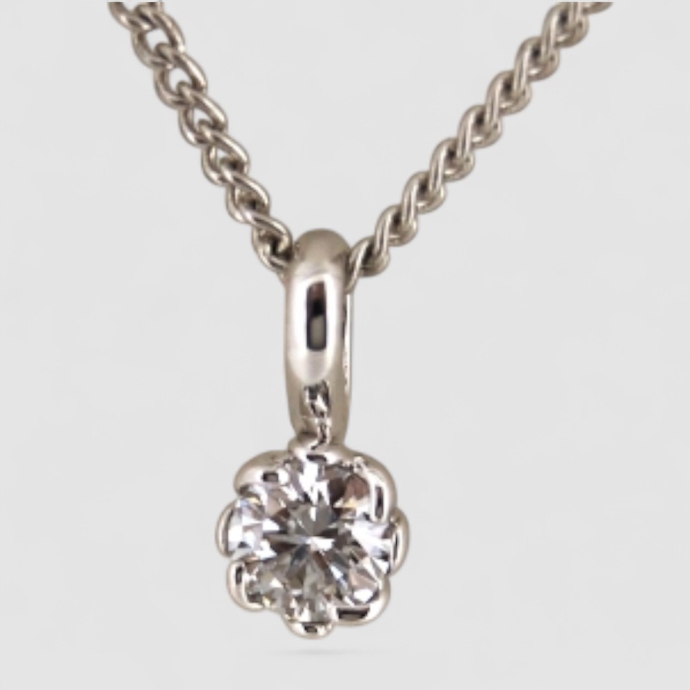 T様よりリフォームの依頼。『今持っているプラチナのダイヤリングをペンダントにリフォームして欲しい。今のデザインが気に入っているので、石枠をそのま利用して欲しい。』というご要望に応えて加工しました。リング枠をそのまま活かすと収まりが悪い場合もありますが。このデザインの場合は、不都合が見当たりませんでしたので、加工に至りました。T様には、ご満足いただきました。残りの、プラチナはT様のご希望により、買い取りました。もちろん、返却も可能です。