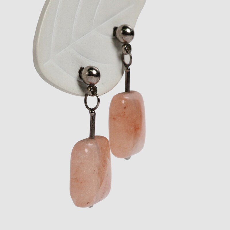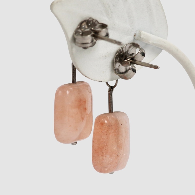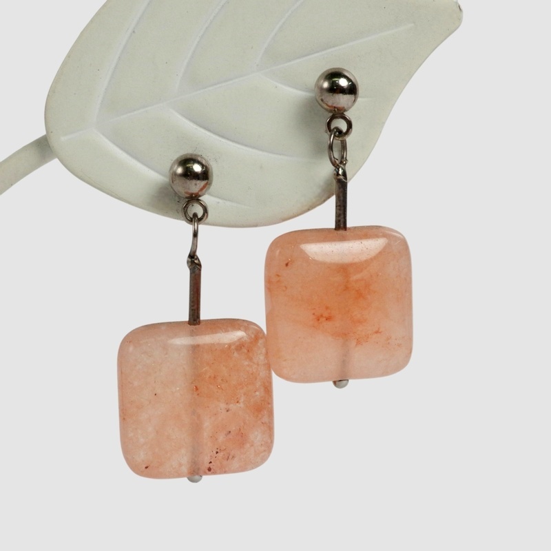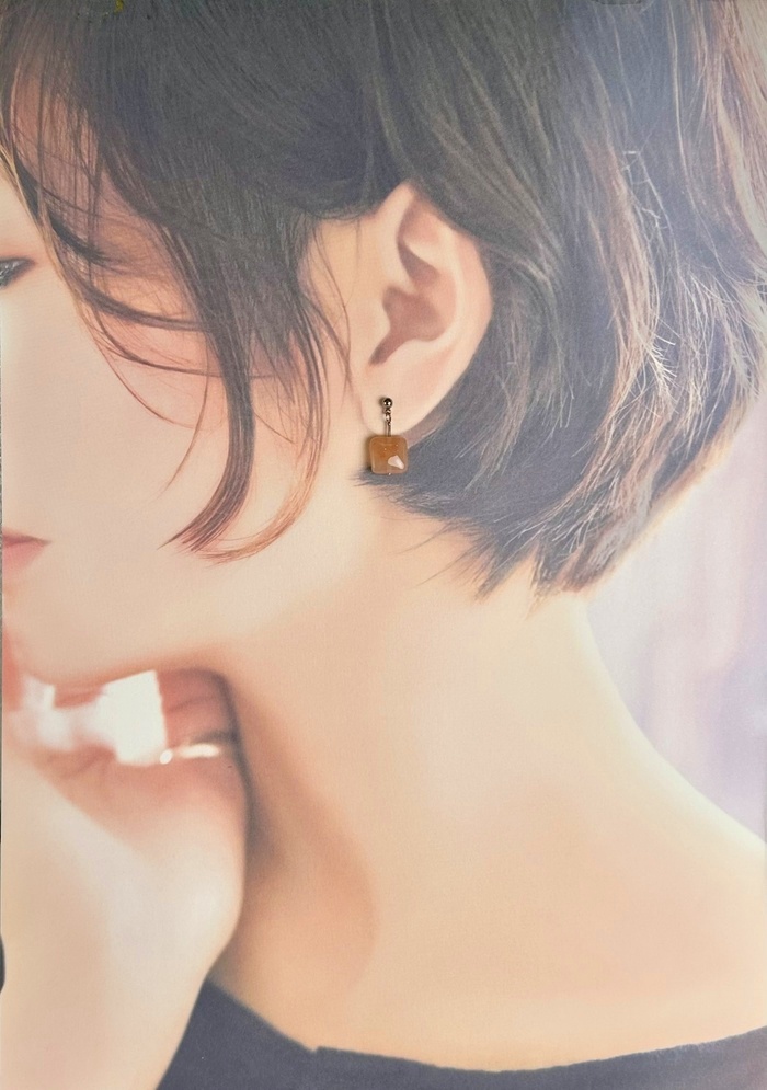 淡いオレンジカラーのスクエアストーンが、耳元でゆらゆら揺れるかわいいデザイン。