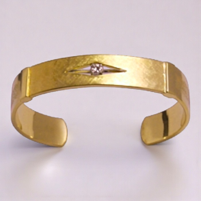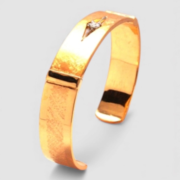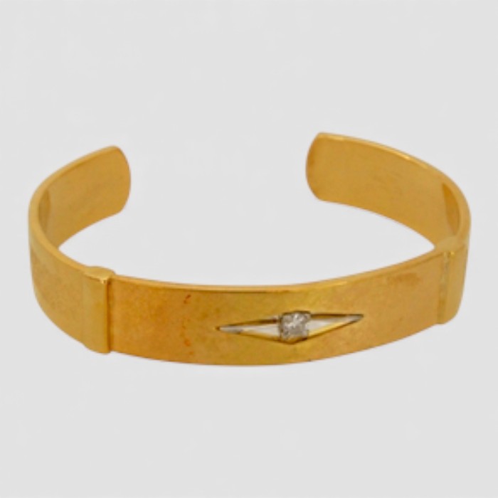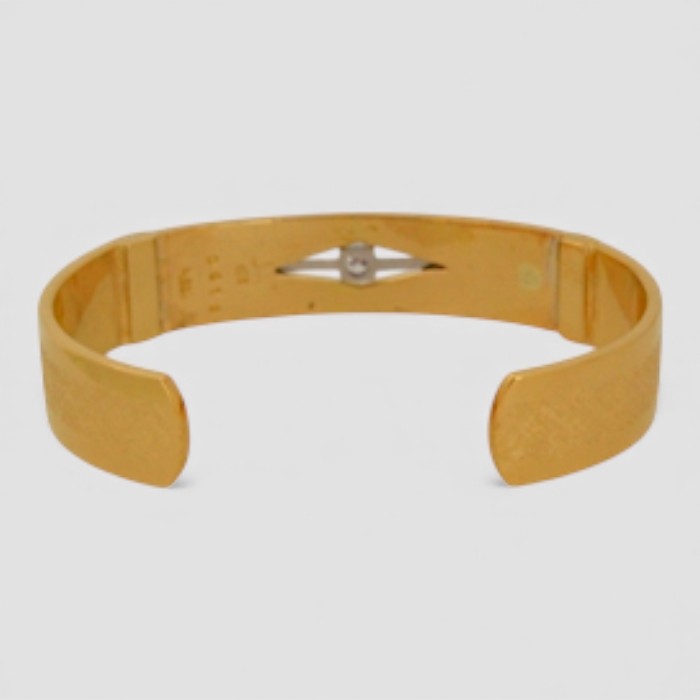 中央のダイヤモンドが入ったプレート部分はそのままデザインとして採用。思い出のパーツを残しつつ、モダンなバングルスタイルに仕上げました。