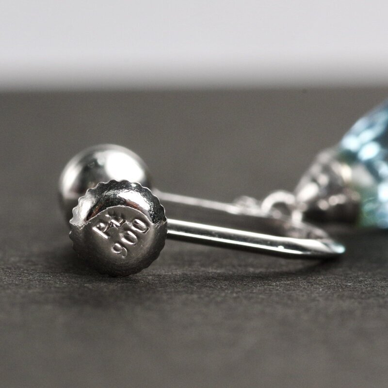 Pt900 ブリオレットブルートパーズ イヤリングは、瑞々しい青の輝きを楽しめる大人のシンプルデザイン。