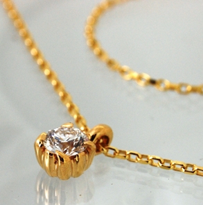 遠方にお住まいのS様からのお問い合わせ。「プラチナダイヤ立爪リングをK18イエローゴールドのダイヤペンダントネックレスに作り替えたいのでお見積もりして欲しい。」お問い合わせにお応えして、いくつかのデザイン及び見積もりをメールして、S様にお選び頂き制作しました。ネックレスは少し丈夫な太さ、長さは43cmを希望されました。又、ダイヤのトップはネックレスから外れない物を希望されたので小さなバチカンにしました。S様のご希望でプラチナは下取り致しました。出来上がり品に、感謝のメールを頂きました。