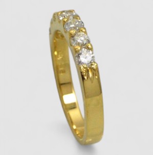 S様のご依頼で、18金(K18)素材のハーフエタニティダイヤモンドリングを制作しました。 当店の綺麗なダイヤモンド7石を選定し、爪留めで丁寧に仕立てています。