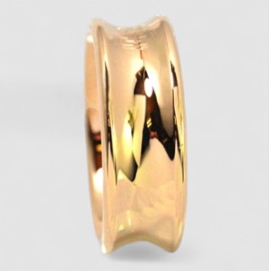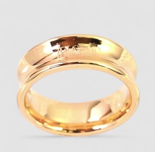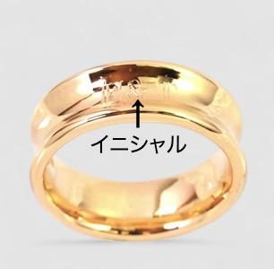 K様より、「18金でボリュームのある幅広のリングが欲しい」とご依頼をいただきました。デザインのご希望として、リングの中央部分がくぼんでいる特徴的なフォルムで、さらにご夫婦のイニシャルを入れたいとのご要望でした。