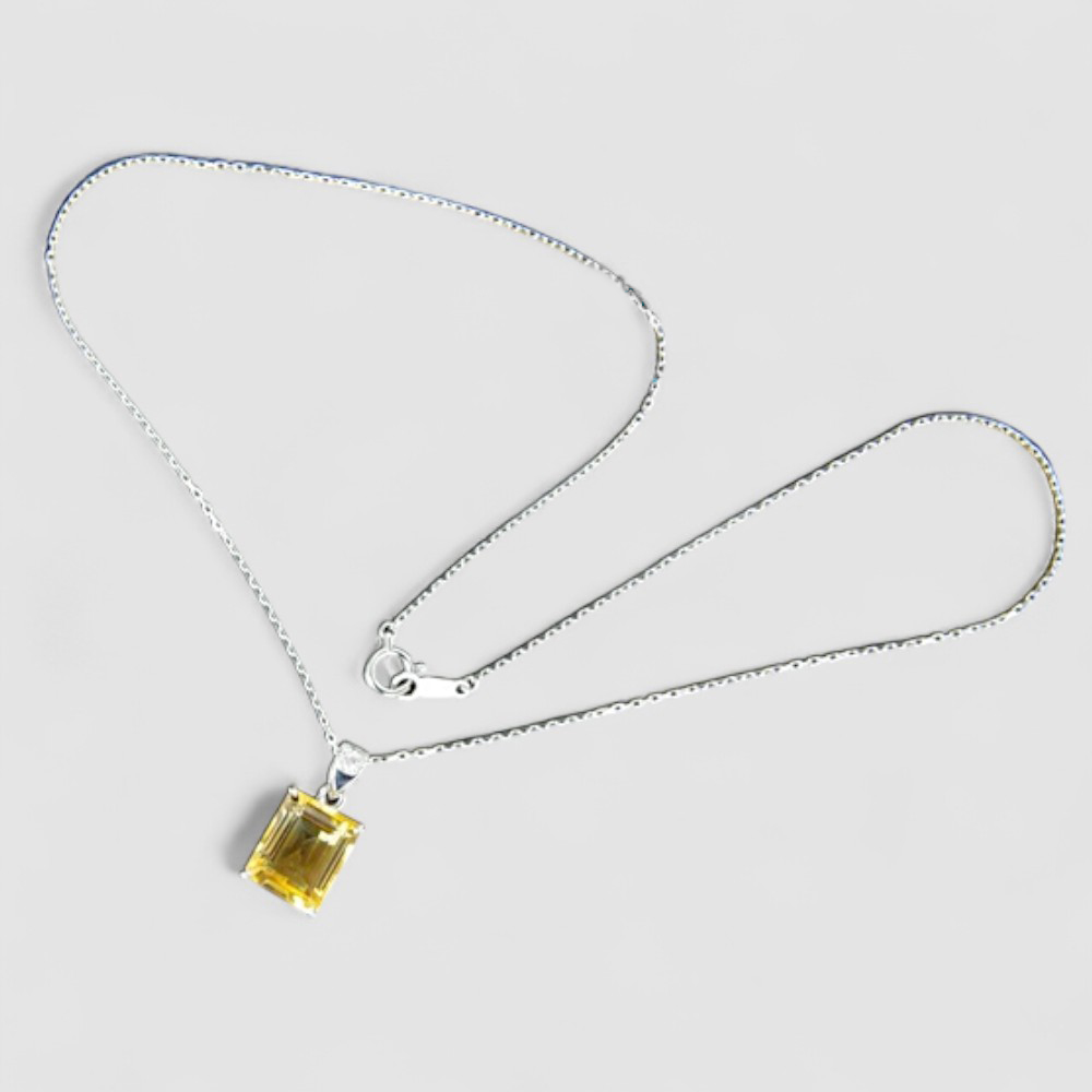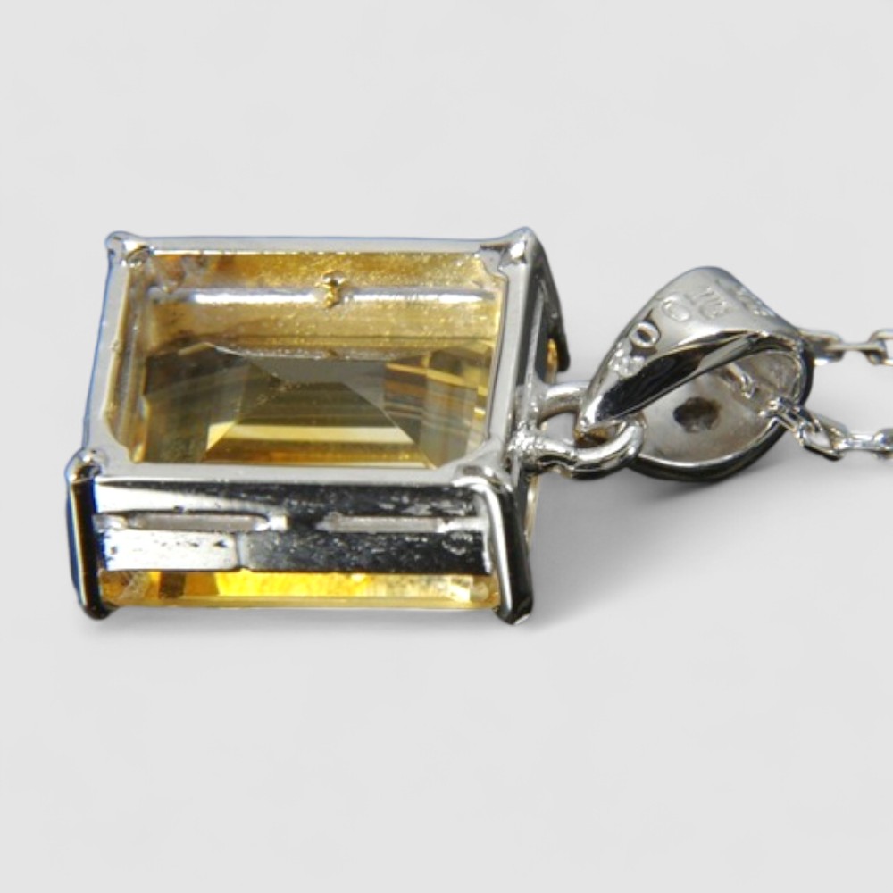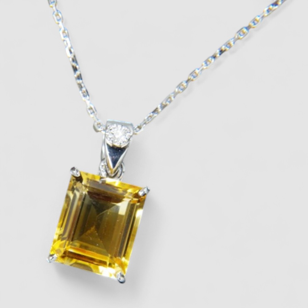 お客様のご要望にお応えし、指輪からシトリントパーズを取り外して、シンプルなペンダントを制作しました。素材は18金ホワイトゴールドを使用し、石の持つ美しい色合いが引き立つようにデザインしました。