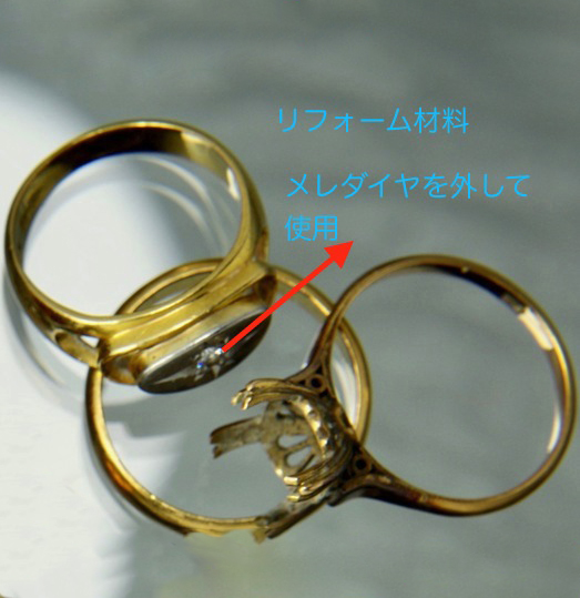 お客様が使わなくなった金の指輪を数本お持ちになり、「この指輪についている石を使って、新しいペンダントを作って欲しい」とのご依頼をいただきました。