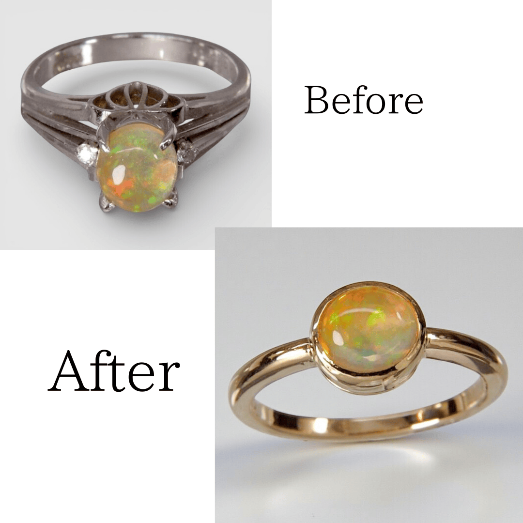 【リフォーム】メキシコオパール指輪のリフォーム|K18シンプル伏せ込み枠へ