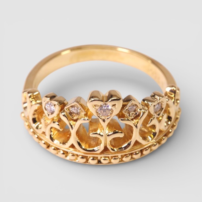 A様より「K18ダイヤ入りティアラリング」のご注文をいただきました。お手持ちの素材を活かして制作した、こだわりのオーダーメイド事例です。