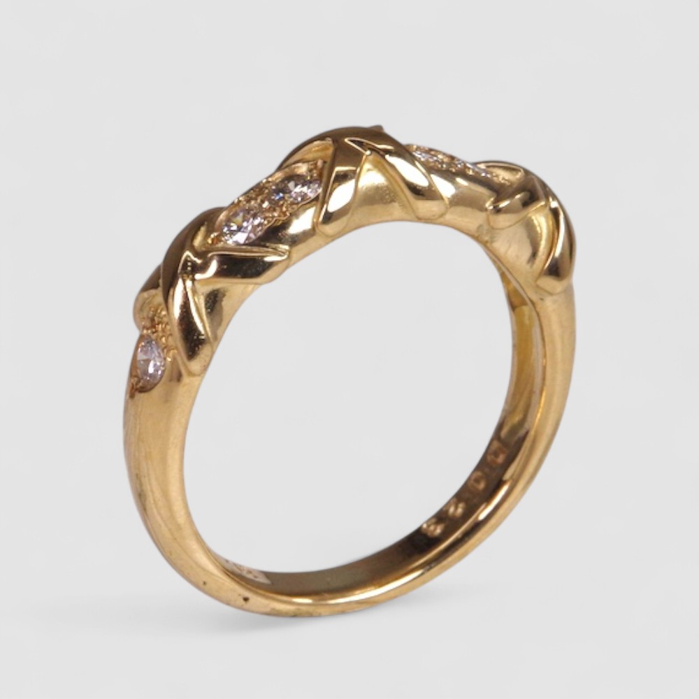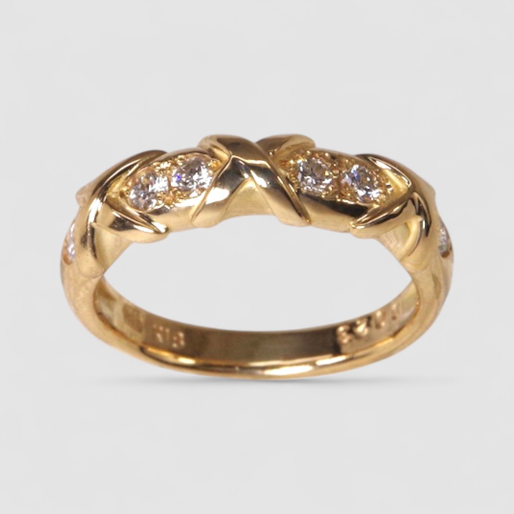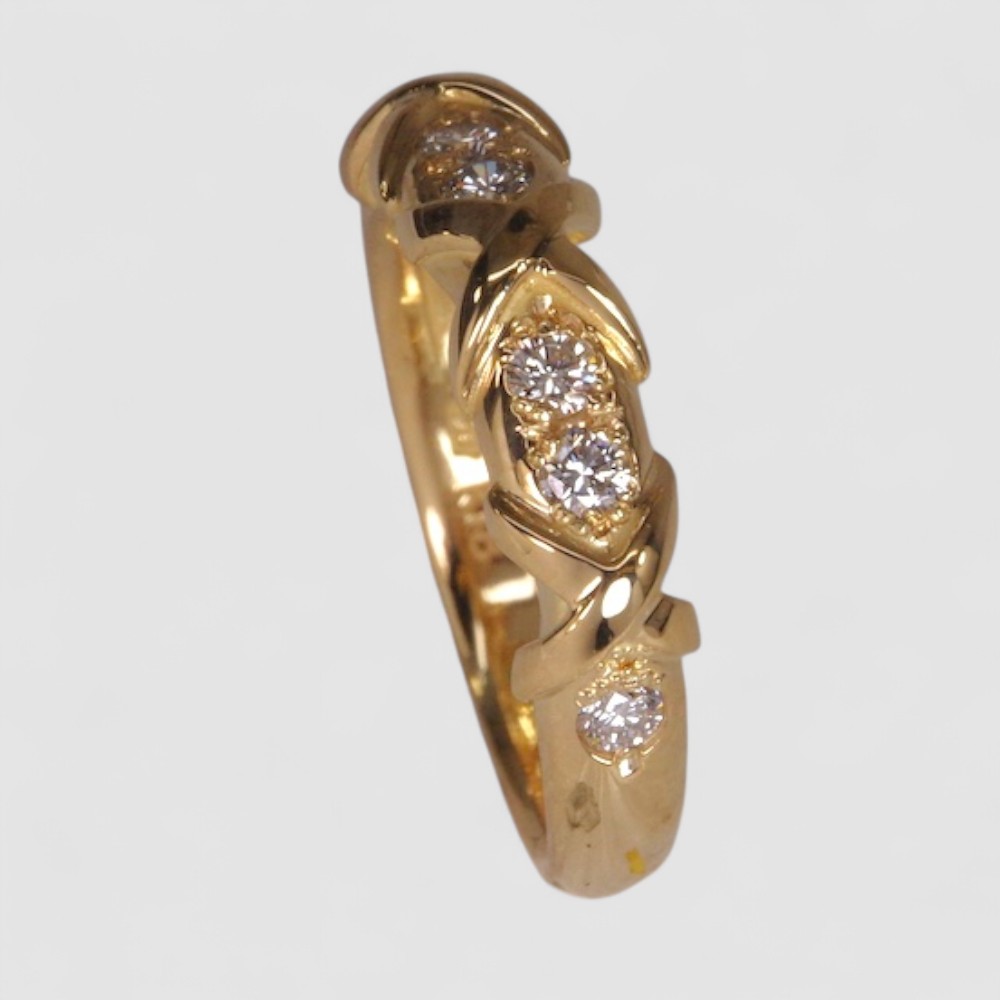 【オーダー制作例】K18ダイヤモンドファッションリング制作 販売価格はお問い合わせください。 返品特約に関する重要事項 お問い合わせ O様のご注文でK18ダイヤモンドリングを制作しました。当店見本のデザインがお気に召して、この指輪を参考デザインでK18メレダイヤを6P使用して制作しました。使用しなくなった18金のメレダイヤ6P入り指輪を材料にして制作しました。金が少し足りませんでしたので、その分は当店で補充、加工代金に加算させていただきました。 他の写真 Pt900ダイヤモンドリング 当店デザイン制作