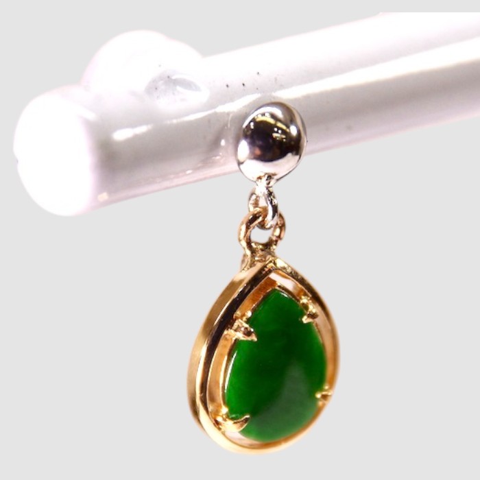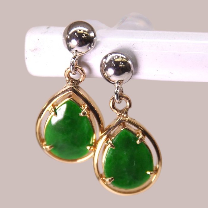 K18の緑石が付いたイヤリングを、Pt900/K18素材で