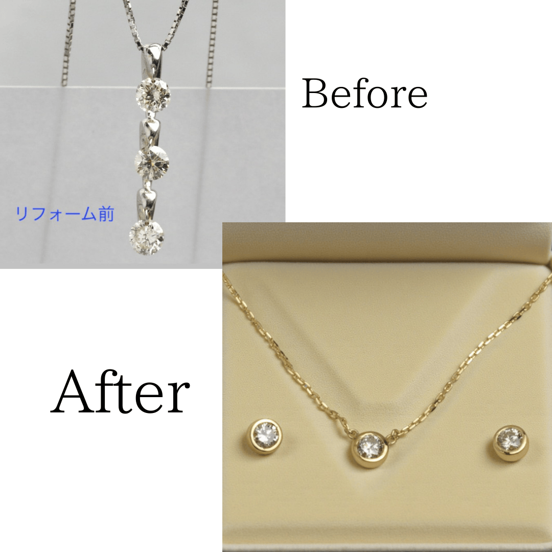 | リフォーム内容 | 3連ネックレスから、ペンダント・ピアスセットへ |
