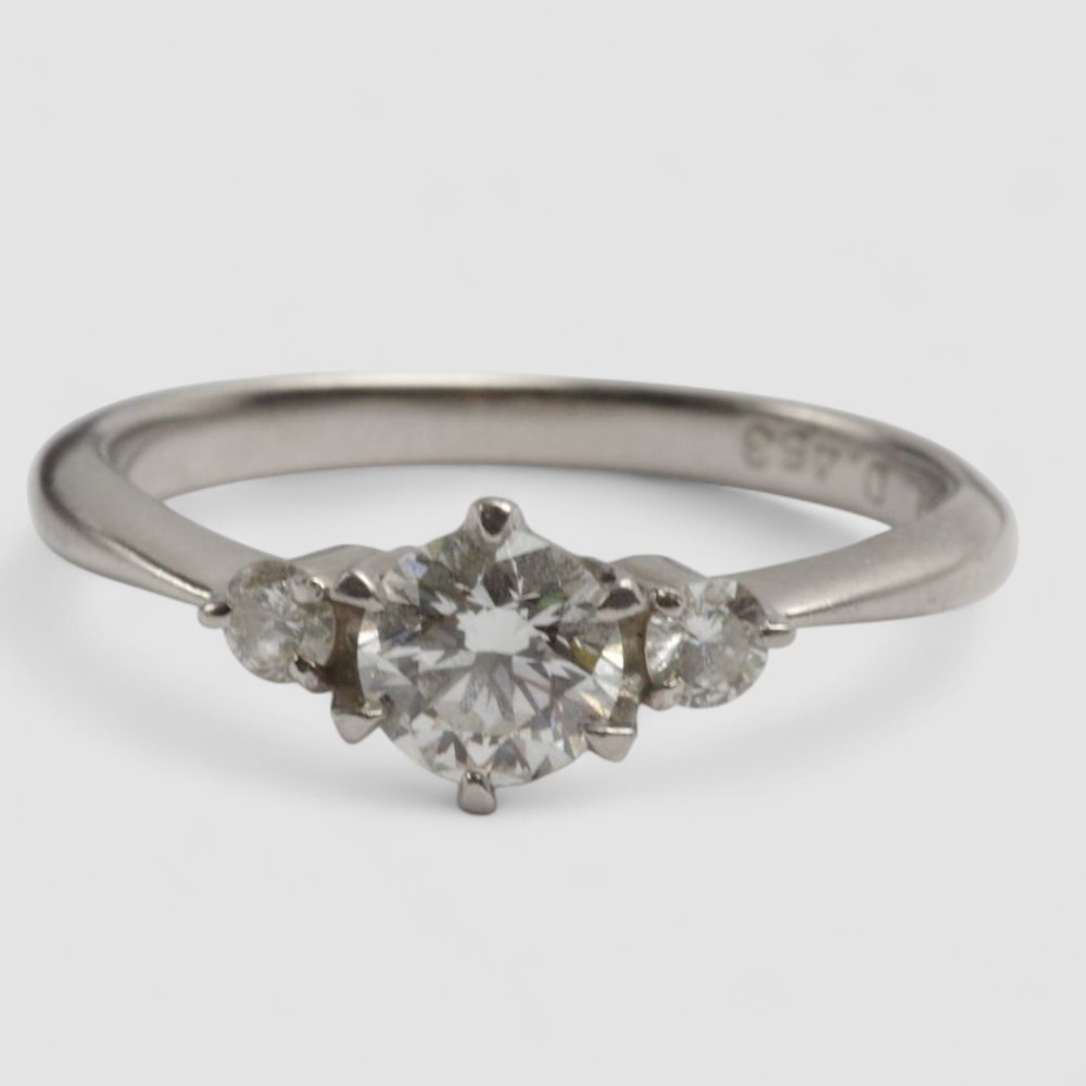 Pt900ダイアモンド、両脇にメレダイヤ入りエンゲージリング、K10メレダイアモンドお花モチーフペンダントネックレスご持参のお客様。ダイアモンドエンゲージリングのダイアモンド3P