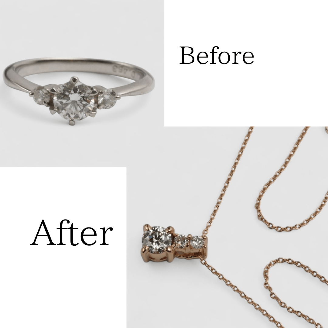 プラチナダイアモンドリング・リフォームでK18ピンクゴールドダイアモンドペンダントに作り替え