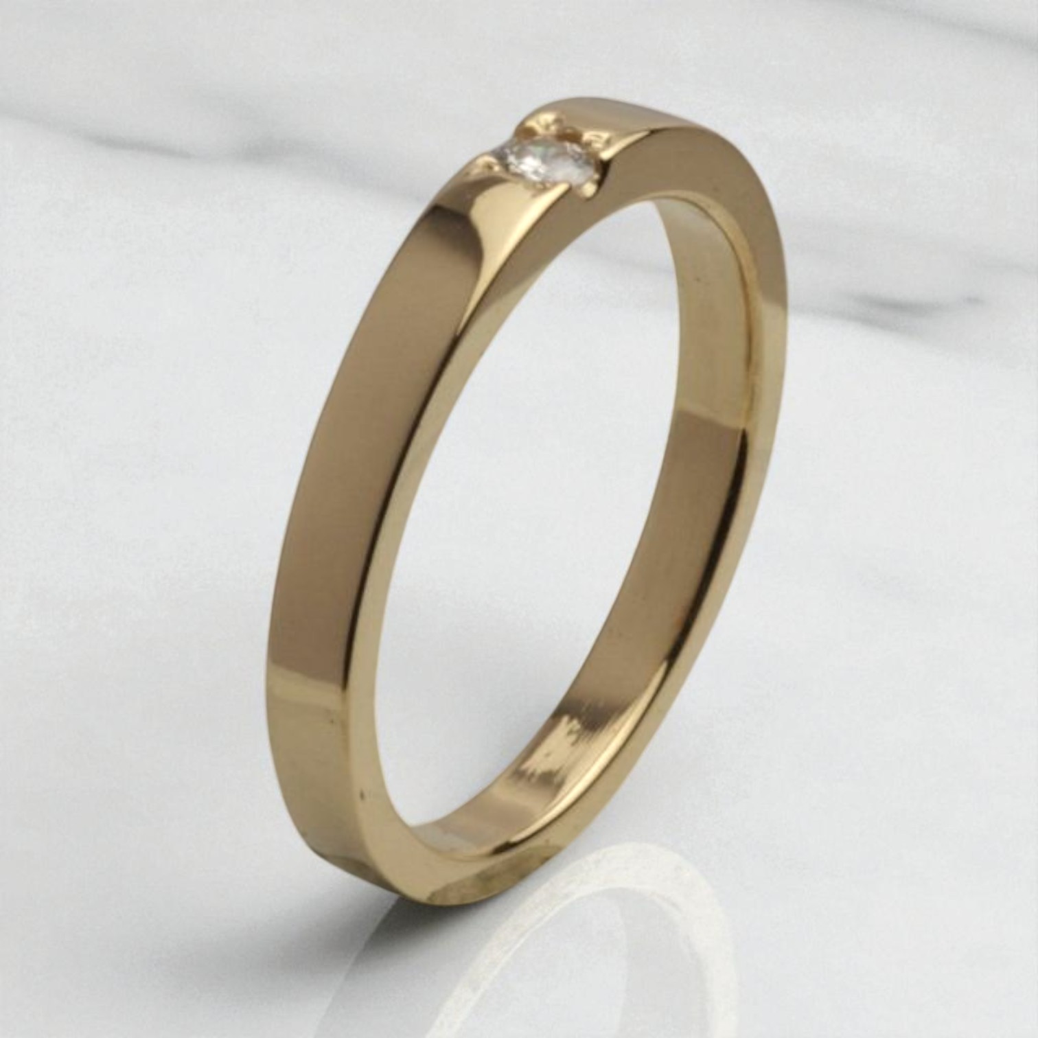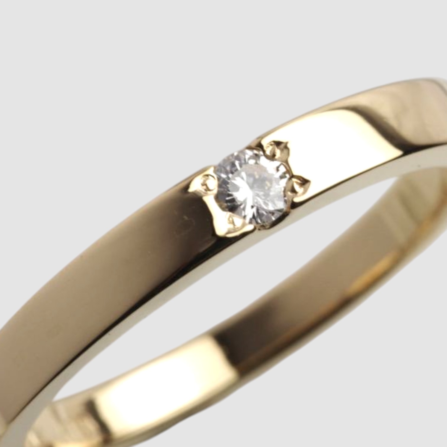 リングの幅をお持ち込みのダイヤモンドの直径に揃えることで、石が最も美しく見える一体感のあるデザインをご提案。普段使いしやすいように、引っかかりが生まれないよう石を丁寧に留めました。