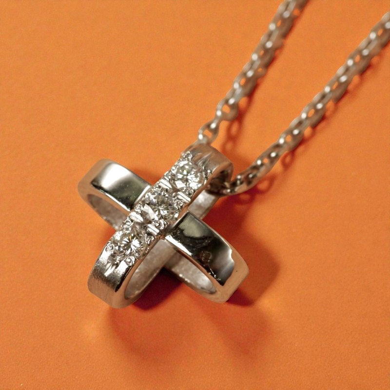 【オリジナル商品】丸みのあるクロスモチーフにダイヤモンドをあしらった、上品なペンダントネックレスです。