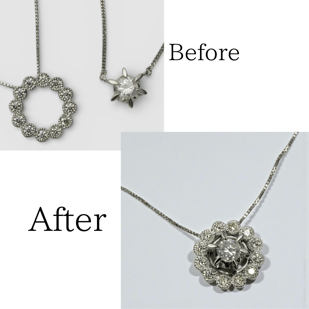| リフォーム内容 | 2つのペンダントを1つに統合(石の留め直し・加工) |