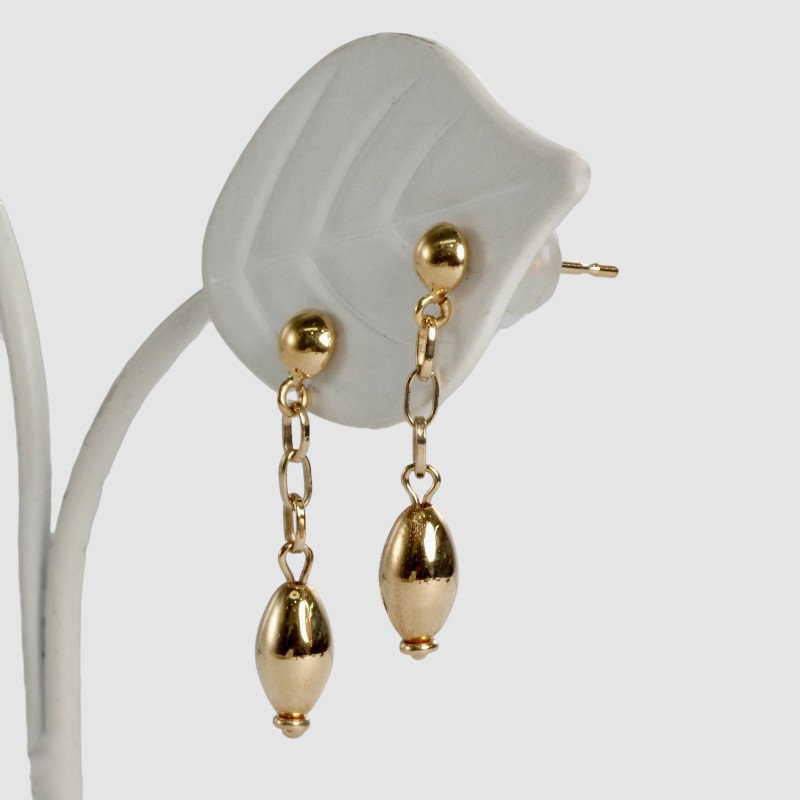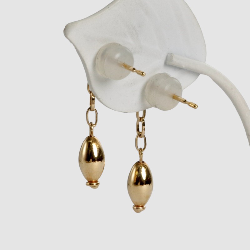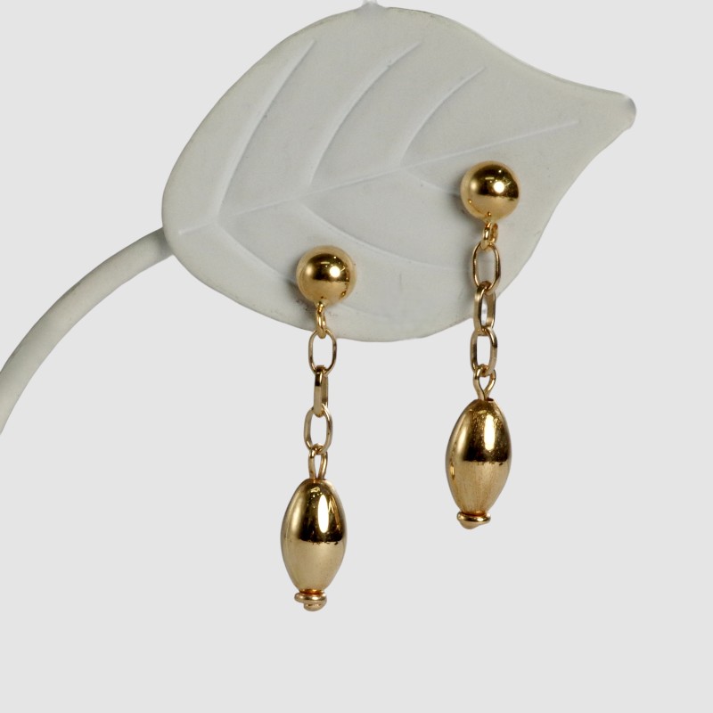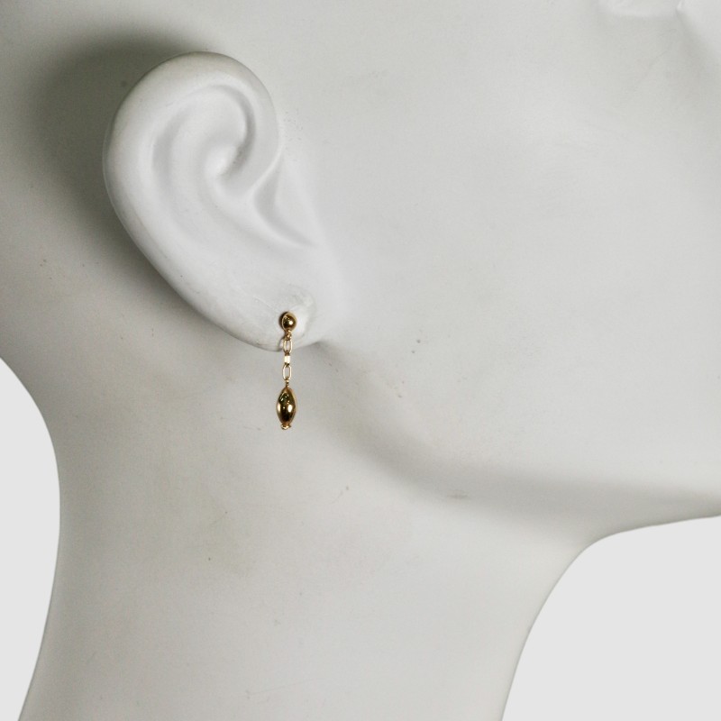 【オリジナルデザイン】チェーンの先にアーモンド型パーツを揺らした、当店工房制作のオリジナルピアス。