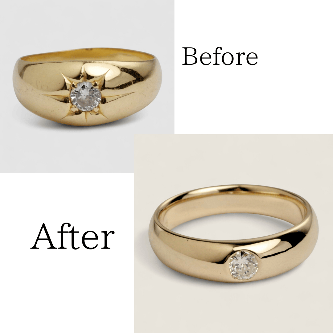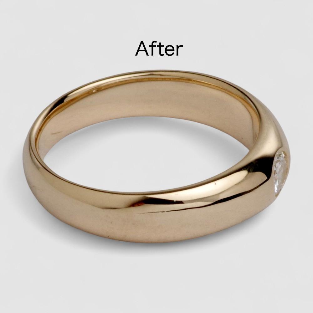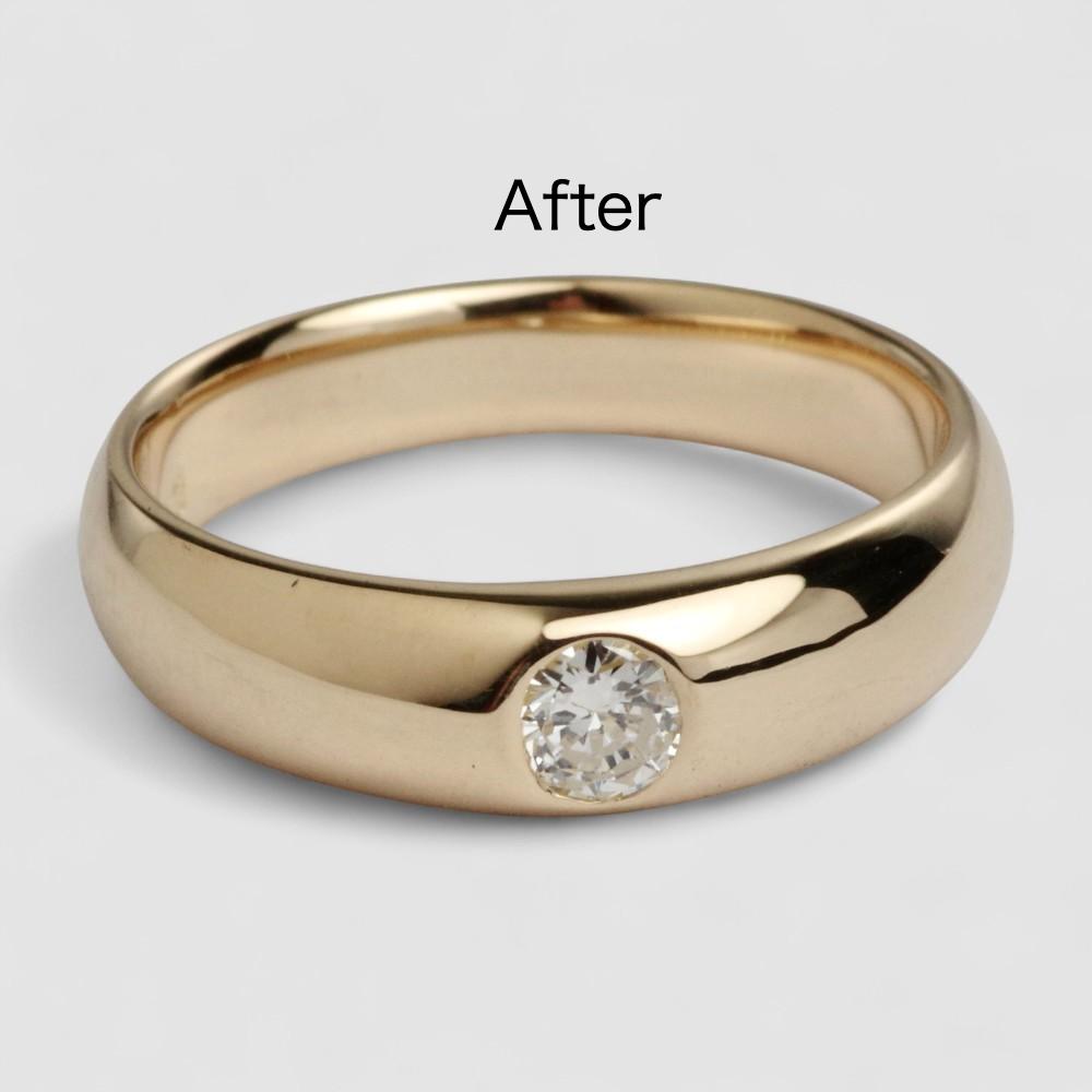 元のリングのボリューム感を活かしつつ、すっきりした見た目に作り変え、出来上がりにとても喜ばれました。