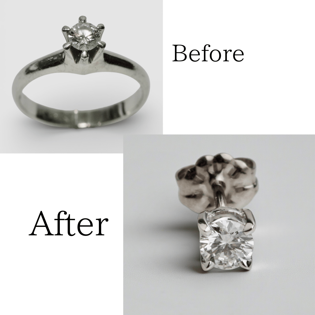 【リフォーム例】立爪婚約指輪を普段使いの片耳ピアスへ