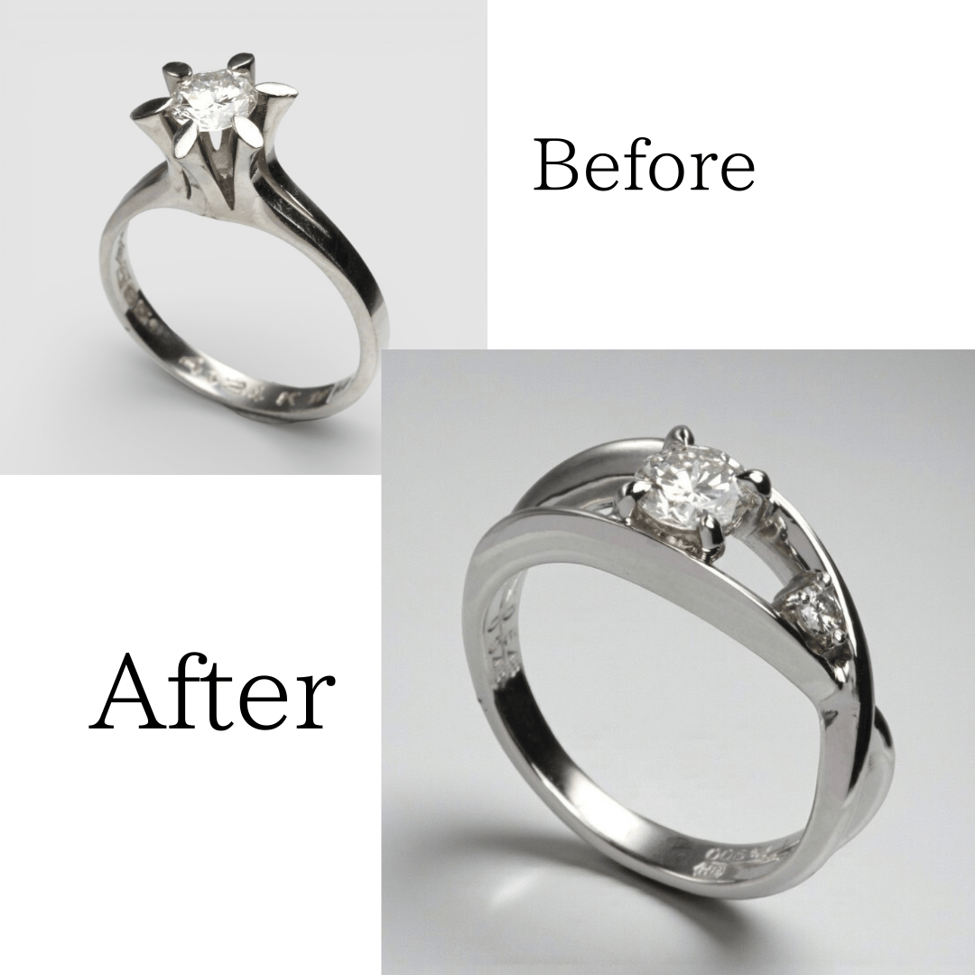 | リフォーム内容 | プラチナ立て爪ダイヤリングを普段使いデザインへ作り替え |
