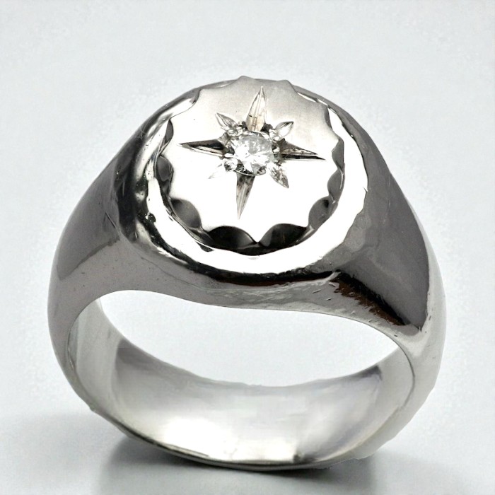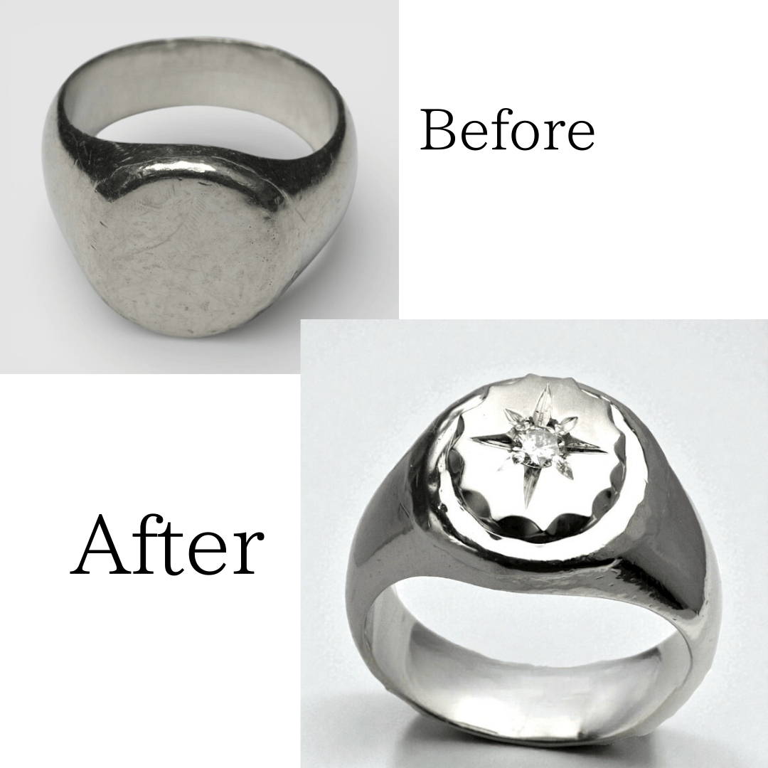 | ご依頼内容 | Pt900印台リングのサイズ直し+中央にダイヤ留め |