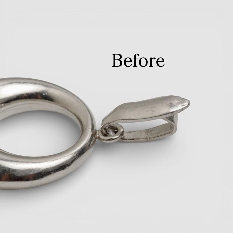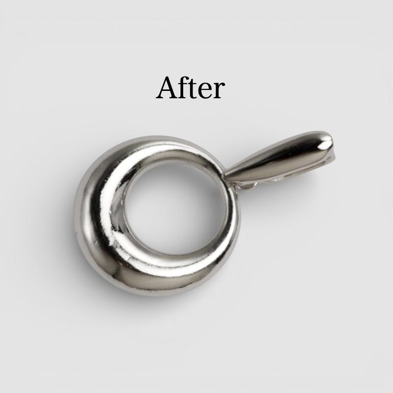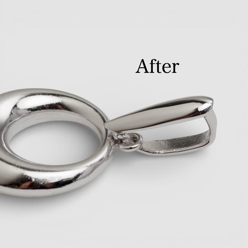 既存の金具を広げる方法もありますが、今回は強度を重視。元のデザインに似せた新しいバチカンを制作・交換いたしました。