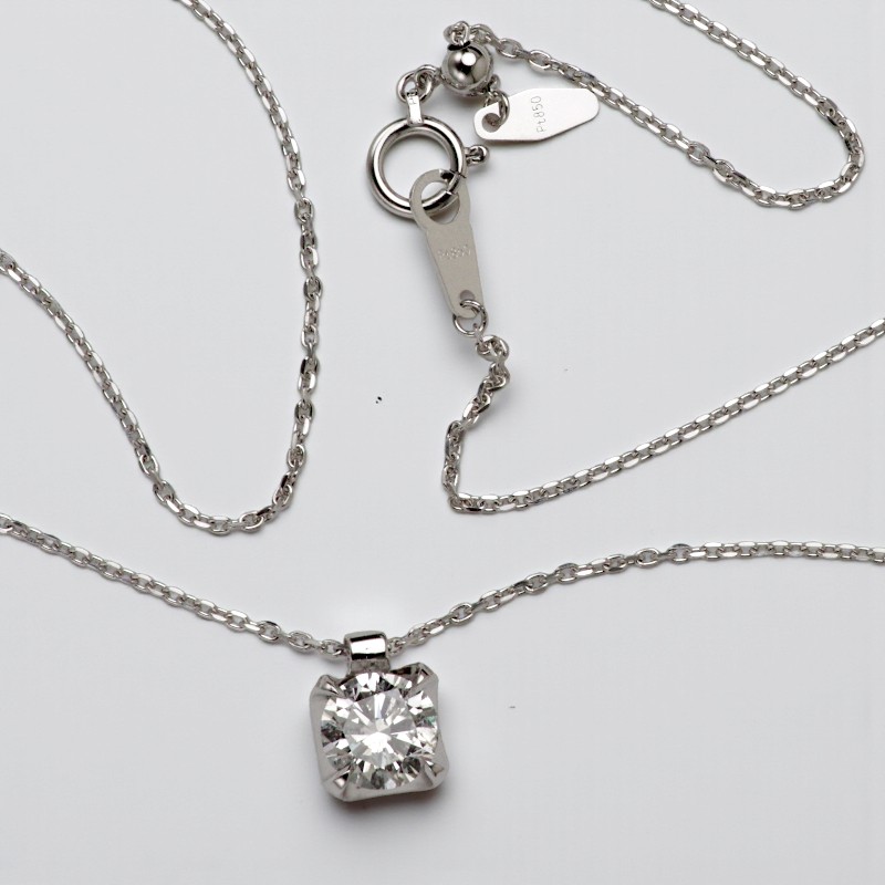 ネックレスチェーンも当店でご用意。その日の服装や襟元のデザインに合わせて、自由に長さを変えられる便利なスライドチェーン(アジャスター付き)をお選びいただきました。
