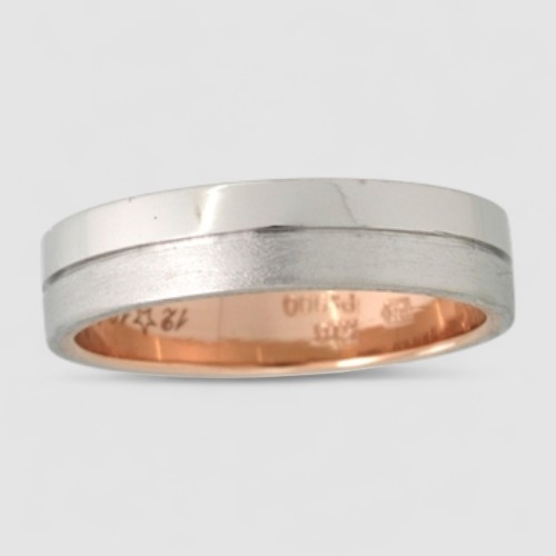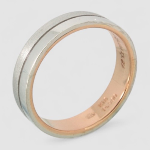指輪は外側がPt900(プラチナ)、内側がK18ピンクゴールドというコンビネーション素材でした。さらに、プラチナ部分も上下で鏡面(光沢)とつや消し(マット)に分かれており、元の複雑な仕上げを丁寧に再現しました。