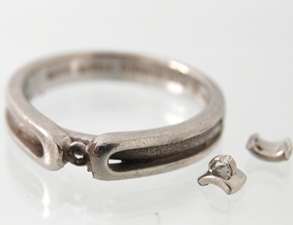 使わなくなったプラチナリング枠を利用してプラチナ、金のコンビピンキーリング制作