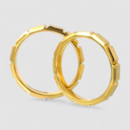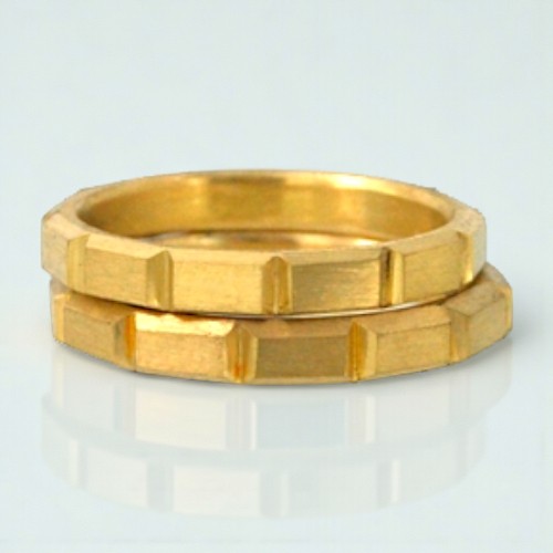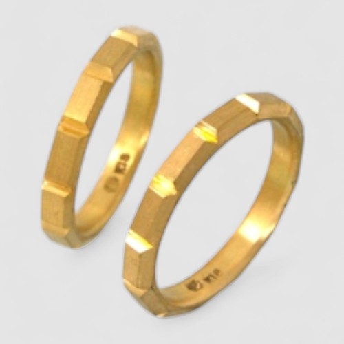 板チョコを思わせるリズミカルな凹凸をリング全周に施しました。立体的でモダンなフォルムが、他にはない個性をお求めのお二人に最適です。