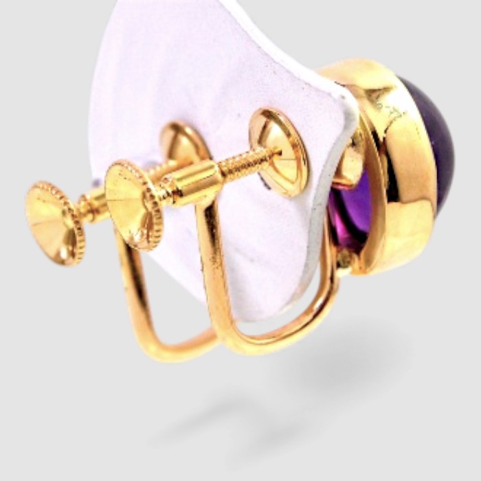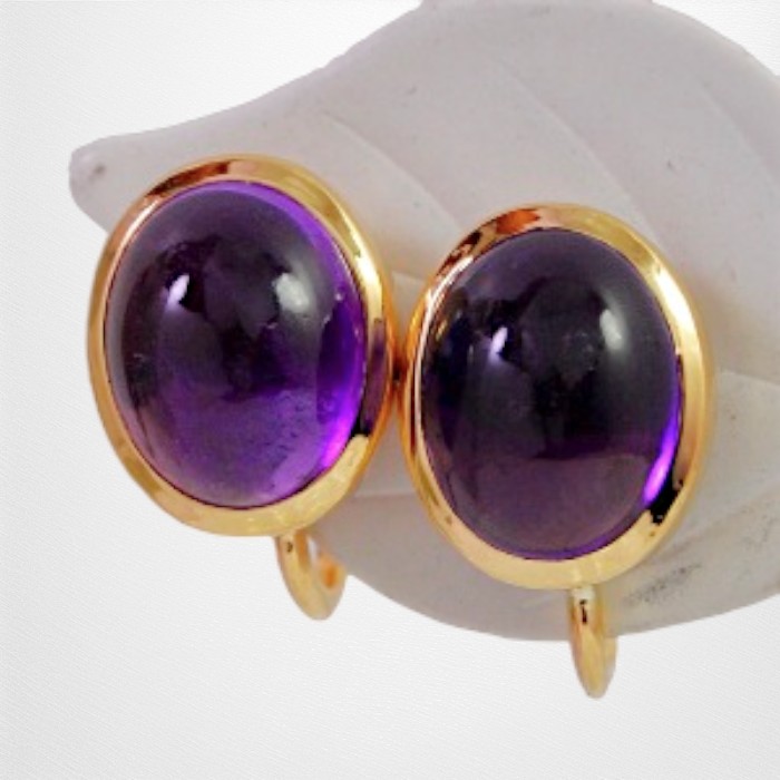 指輪と同じ「カボションカット(9×7mm)」のアメシスト(アメジスト)を2石ご用意。ぷっくりとした艶のある質感が魅力で、指輪とのコーディネートも完璧です。