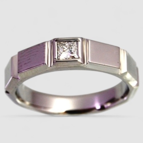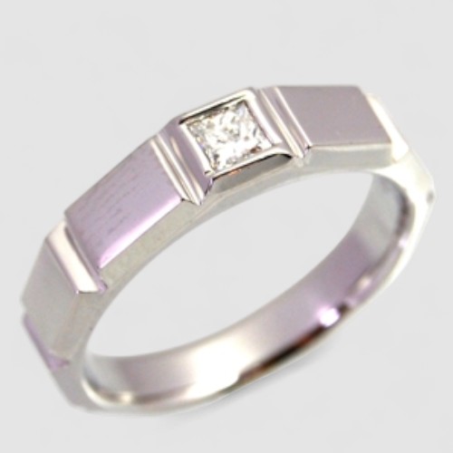 O様がお母様の指輪をご持参になり、奥様の指輪にリメイクなさりたいということでご注文をいただきました。元の指輪は Pt900にプリンセスカットのダイヤモンド1個(0.13ct)が埋め込まれているリング。ご要望を丁寧にお伺いし、デザインをご提案のうえ制作いたしました。
