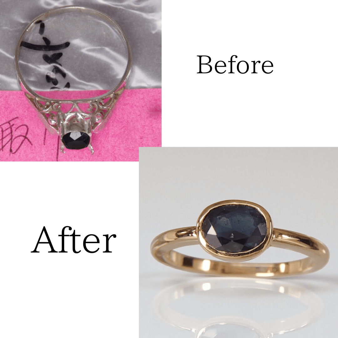 祖母から孫へ。サファイアをK18伏せ込みリングへリフォーム