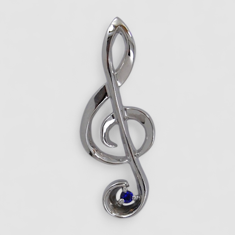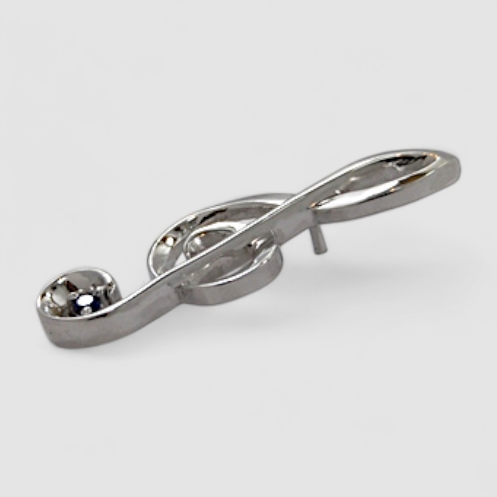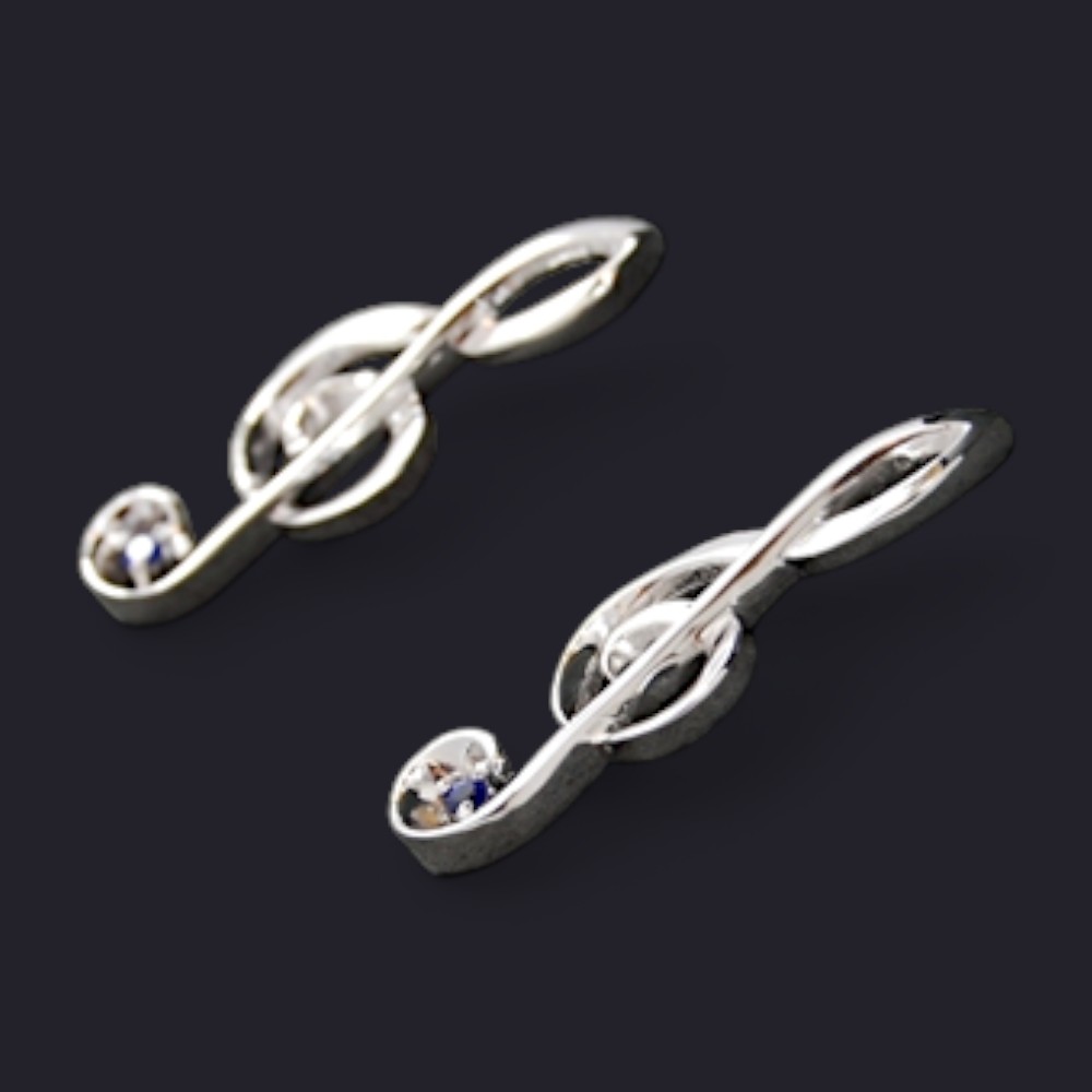 デザインは、音楽のモチーフである「ト音記号」をご提案。素材には高級感のあるプラチナ(Pt900)を使用し、サファイアの青が美しく映える、上品で遊び心のあるタイニーピンに仕上げました。