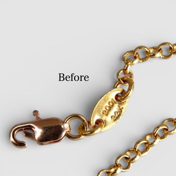 フック本体のゴールド部分はそのまま活かし、内部の「バネ部分のみ」を新しいものに交換いたしました。