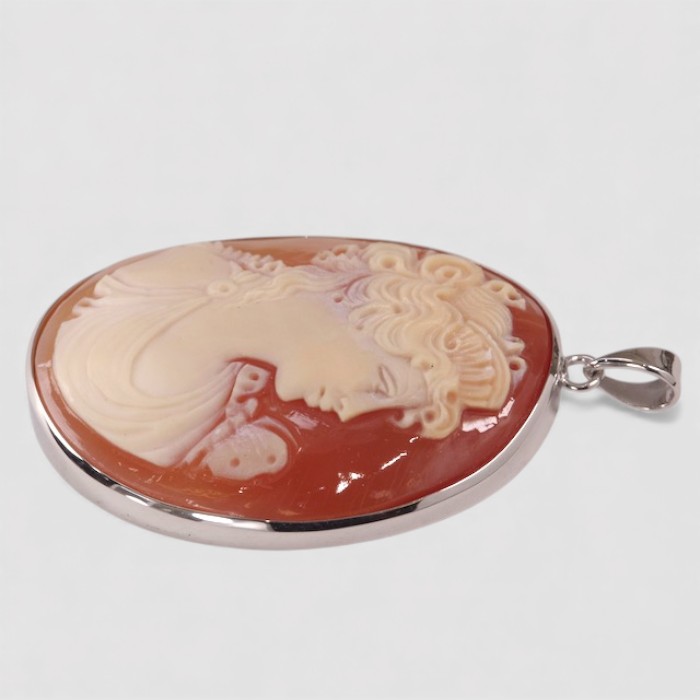 シルバー925のシンプルな枠とロジウムメッキで、カメオの彫刻が引き立つ上品な仕上がりに。